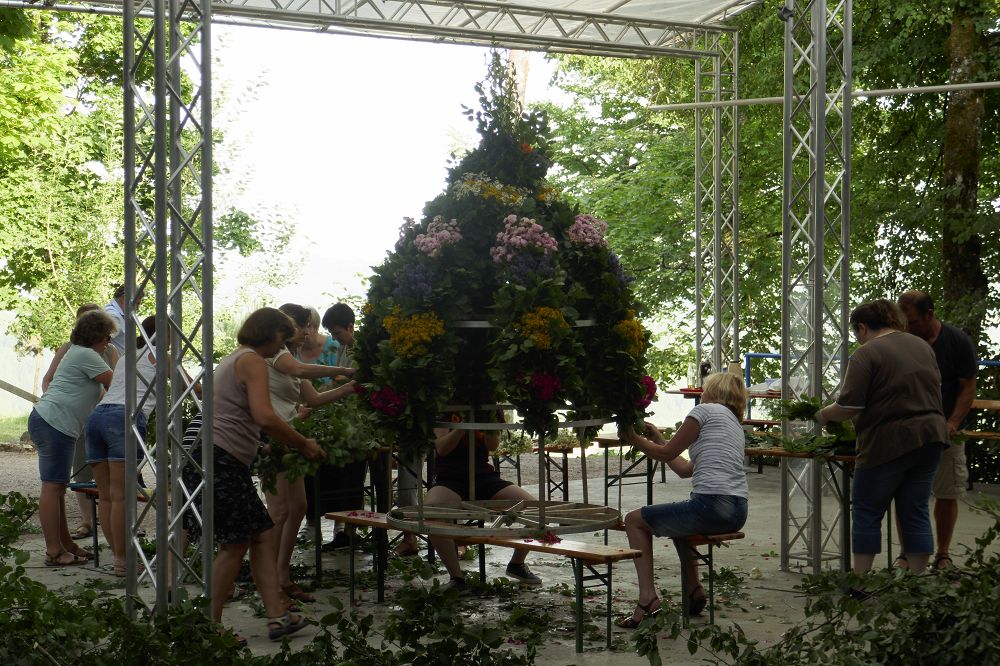 Zu jedem Fest gehört auch die Vorbereitung. Wie der Name schon sagt, geht es beim Kronenfest um die Krone. Diese wird in mühsamer Handarbeit jedes Jahr auf’s neue hergestellt.