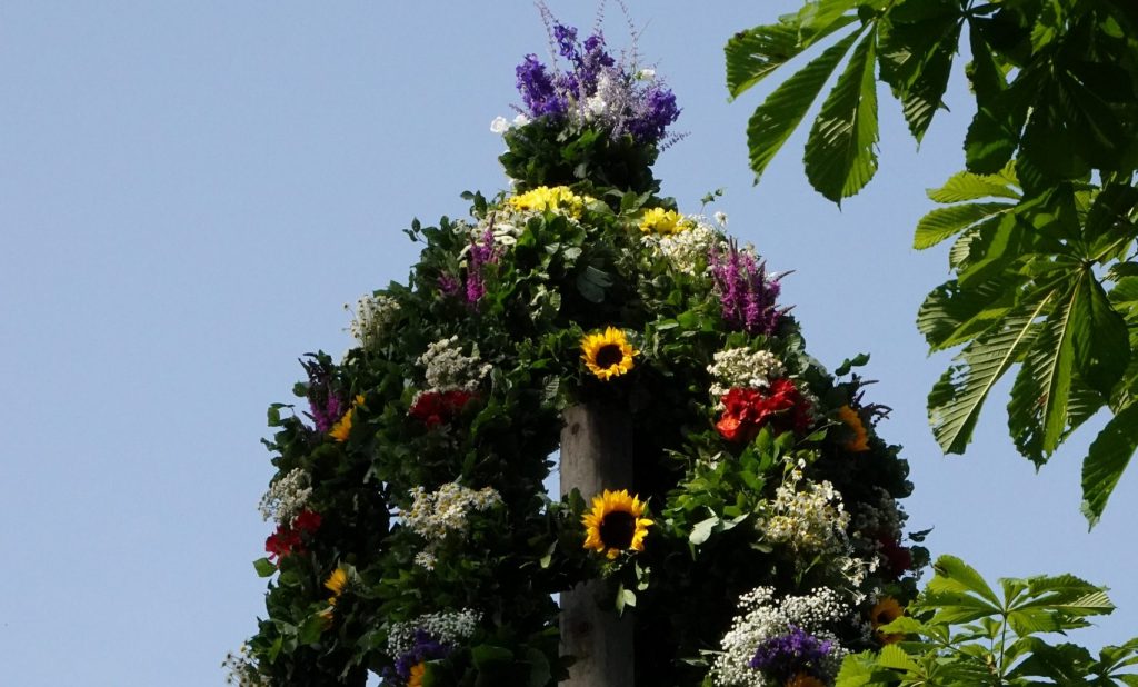 Bereits am Freitag Nachmittag trafen die ersten Gäste und Helfer ein und liefen warm. Warm war es sowieso. Das haben alle gemerkt, beim Krone schmücken, beim Proben der Tänze erstmalig auf unabenem Untergrund oder beim Vorbereiten des Baumstamms. Viele Helfer packten mit an, dankenswerter Weise konnten einige auf dem Parkplatz, eng zusammengstellt übernachten, mit Wohnwagen, Camper oder auch mit Dachzelt.