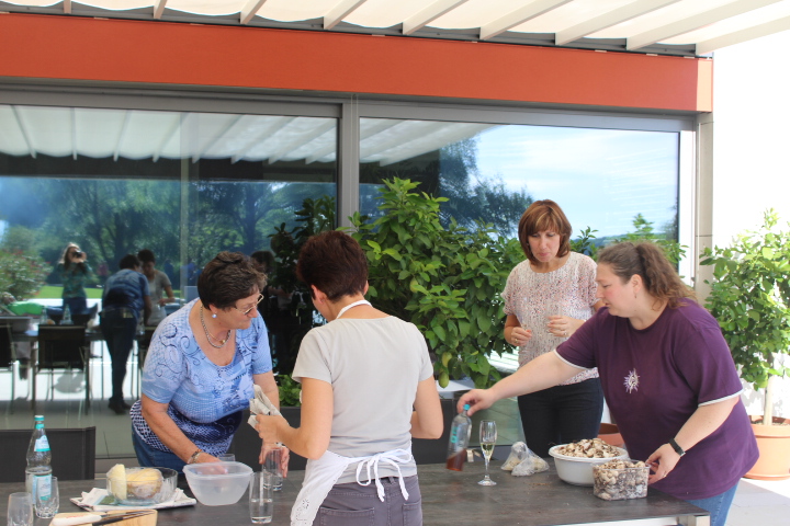 Bei schönem Sommerwetter, im Garten von Günter Untch, waren vielfältige Leckereien geboten. Flammkuchen, Zwiebel- und Krautweihen sowie Brot mit leckeren Aufstrichen wurden von Zwetschgen- und Aprikosenkuchen abgerundet. Am Lagerfeuer wurde noch eine „Buretzen-Tokana“ (Pilz-Eintopf) aus einer „Ceaun“ (großer Kessel) kreiert.